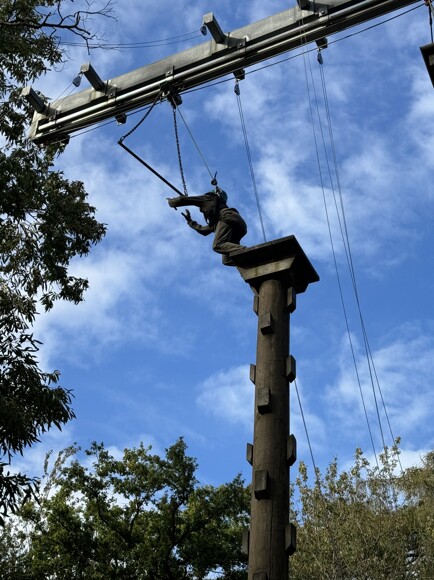 My favourite part was when I did the Fall of Faith because I really had to have the courage to climb up a wobbly, steep pole and then in the end, jump to grab a dangling metal bar which was really fun!".