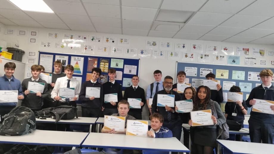Following these successes, four students were invited to compete in the Andrew Jobbings Senior Kangaroo Challenge, a highly demanding extension of the UKMT competition. Special congratulations go to Christopher, who achieved a Gold Award, and Joseph, who achieved a Bronze Award.